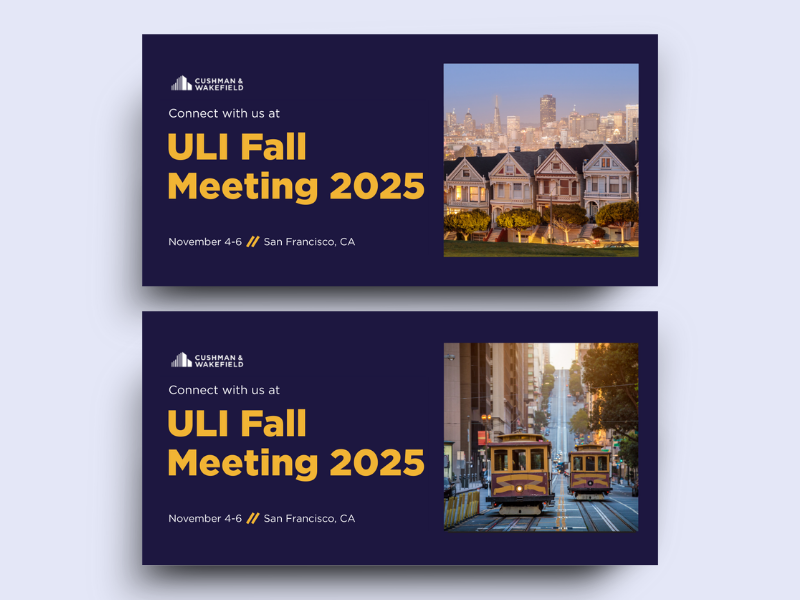 Event Banners for LinkedIn. In addition to promoting research and market insights, I regularly created LinkedIn event graphics for brokers to share ahead of conferences and industry gatherings. These assets needed to adhere closely to Cushman & Wakefield’s brand standards while clearly communicating key event details. Because brokers relied on these graphics to promote their participation, timely delivery was essential, and I ensured each design was produced and distributed quickly so they could share updates with their networks without delay.